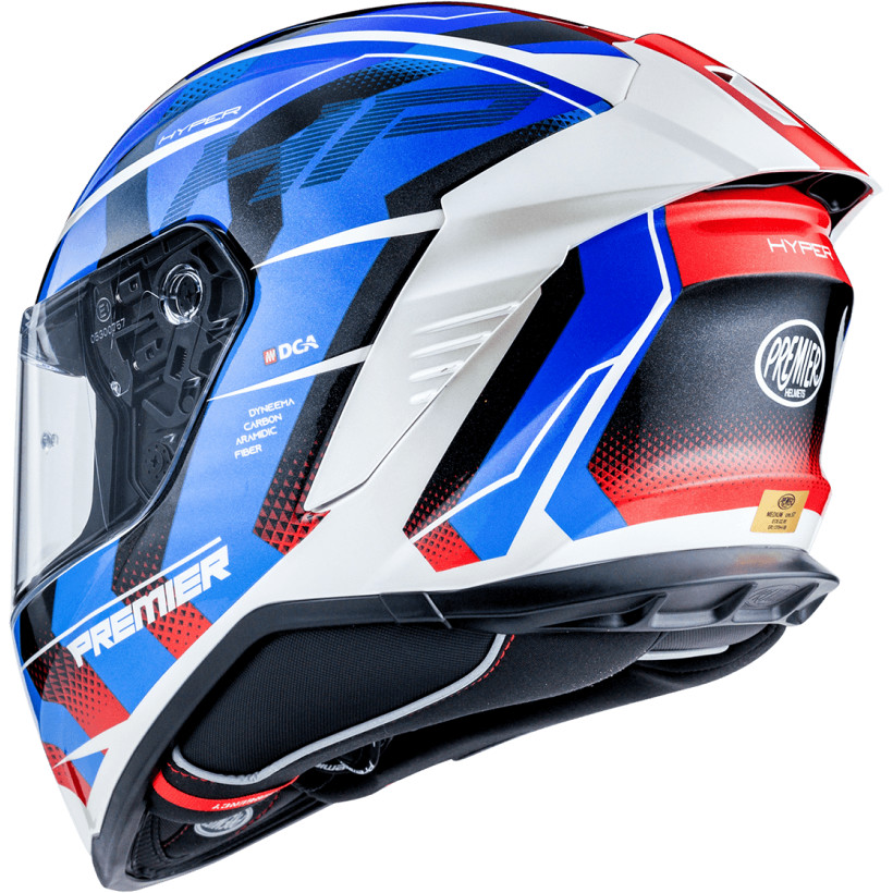 Il casco Hyper di Premier è il frutto di una lunga esperienza nel mondo del racing, pensato per chi cerca prestazioni di alto livello senza compromessi. Con un design aggressivo, è perfetto per la pista, ma anche ideale per viaggi grazie agli interni confortevoli e a un sistema di ventilazione che offre una freschezza paragonabile all’aria condizionata. L’aerodinamica è al centro del progetto, con linee innovative e uno spoiler posteriore che migliora la performance e nasconde l’estrattore d’aria del sistema di ventilazione.